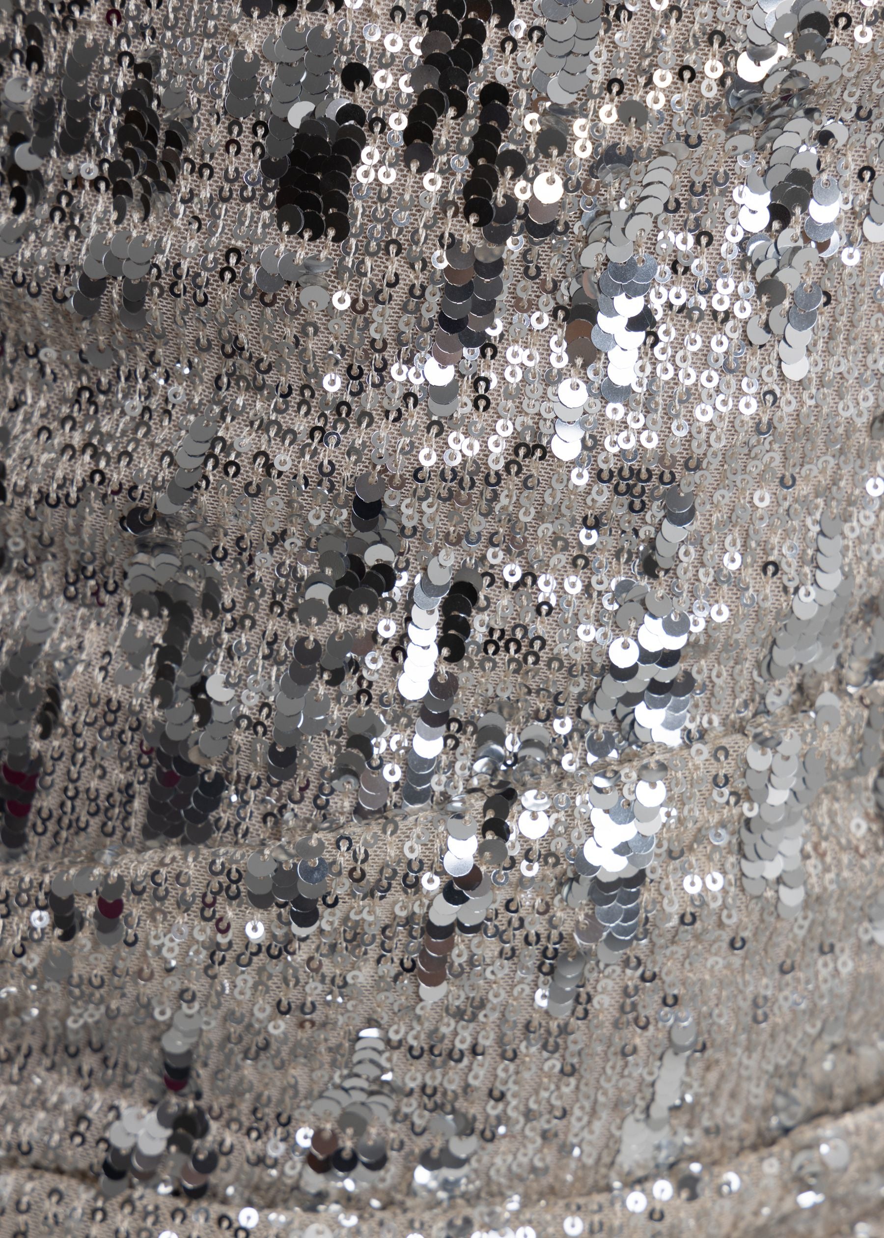 Make a lasting impression in Distant Memories - a dazzling silver sequin mini dress designed to captivate. Featuring a flattering square neckline and wide straps for a structured, elegant fit, this sparkly dress beautifully contours your silhouette. The ruched detailing accentuates every curve, while the draped sash adds a touch of drama and fluid movement. Crafted from shimmering embellished fabric, Distant Memories glitters with every step, making it the perfect statement piece for glamorous nights and unforgettable occasions.
