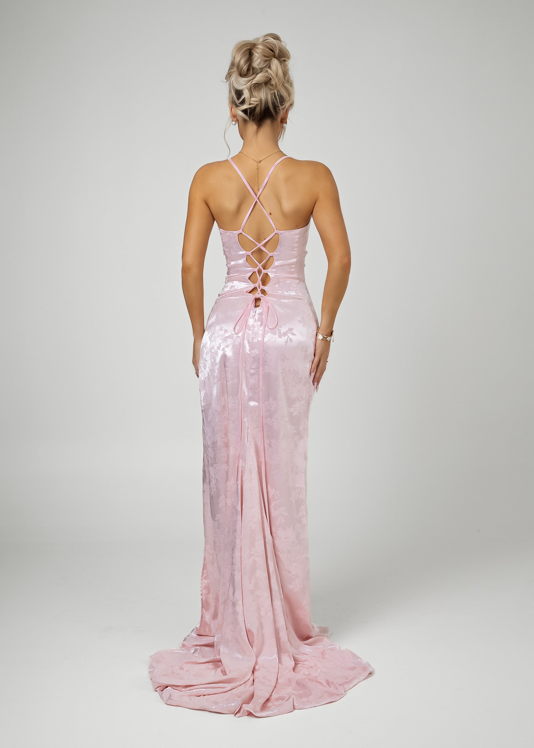 Worth Waiting For – Kleid mit gekreuztem Rücken – Jacquard-Rosa