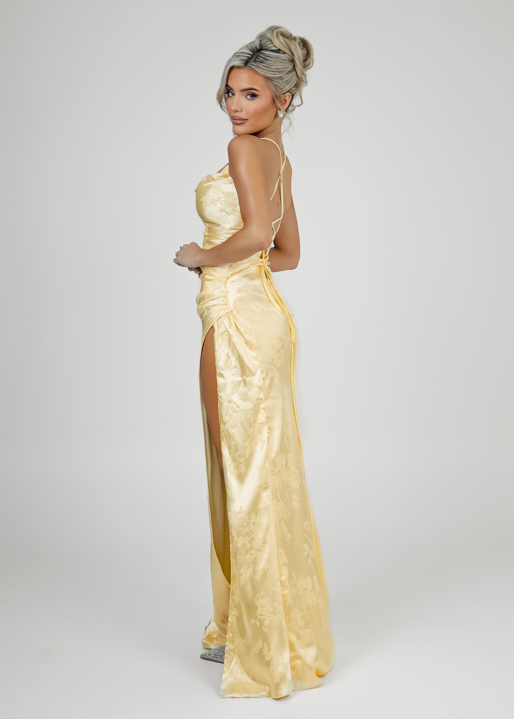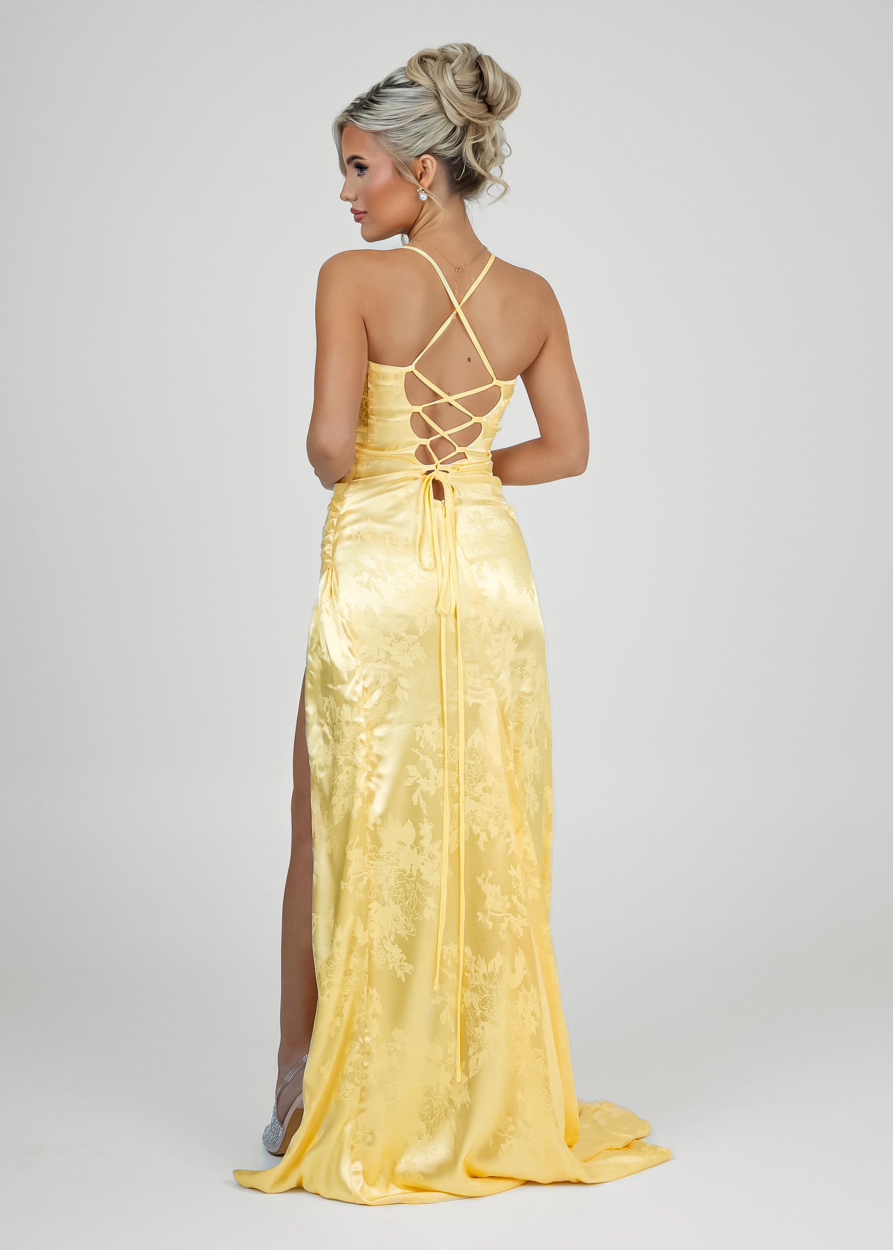 Worth Waiting For Cross Back Gown - Jacquard Yellow